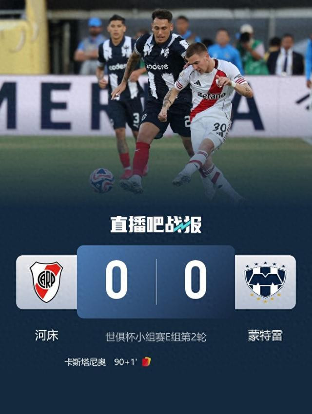 直播吧6月22日讯 北京时间9:00,世俱杯小组赛E组第2轮河床vs蒙特雷,比赛在玫瑰碗体育场打响!上半场,马斯坦托诺任意球造险;双方半场合计21次犯规。下半场,双方均无建树;补时阶段宏益配资,卡斯塔尼奥两黄变一红被罚下!双方全场合砍40次犯规+10黄1红!最终,河床0-0战平蒙特雷,净胜球优势排名小组第一,末轮战国米;蒙特雷暂列小组第3,末轮战已经提前出局的浦和红钻。