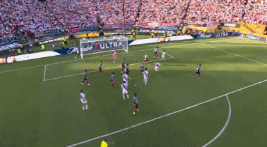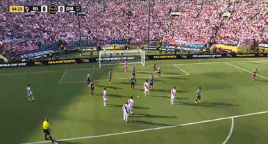 第58分钟,拉莫斯后场出球失误,河床就地组织攻势,最后的远射打高了↓