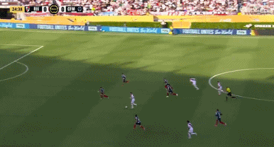 第39分钟,梅萨前插获得好机会,但是停球停到了自己的手臂上↓
