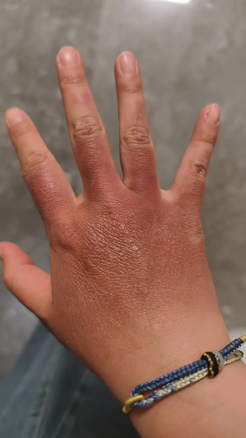 立夏刨雪的手已冻伤了。图/受访者 立夏提供