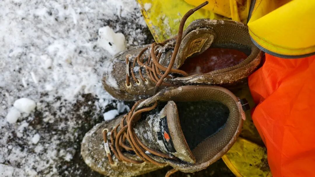 大雪后,立夏的鞋冻住结冰。图/受访者 立夏提供