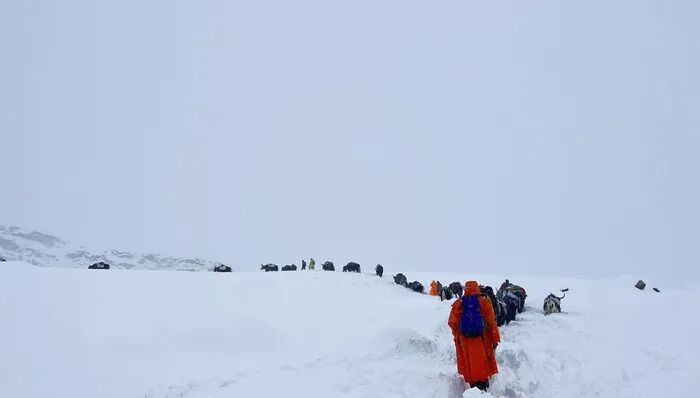 出发前,安荣所在的商团就已经通过天气预测,得知徒步中会遇到小雪,但却没想到这会是一场令近千人受困的暴雪。安荣向界面新闻回顾了珠峰东坡这场突来的暴雪。